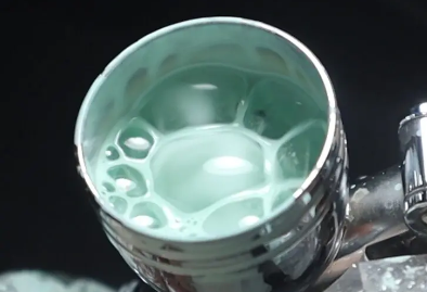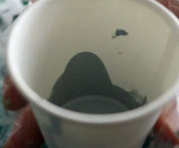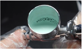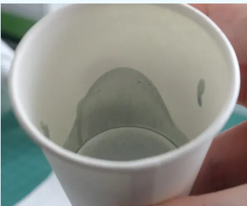 うがいした時、カップの中で塗料が撹拌され「泡」が出来ると思います。