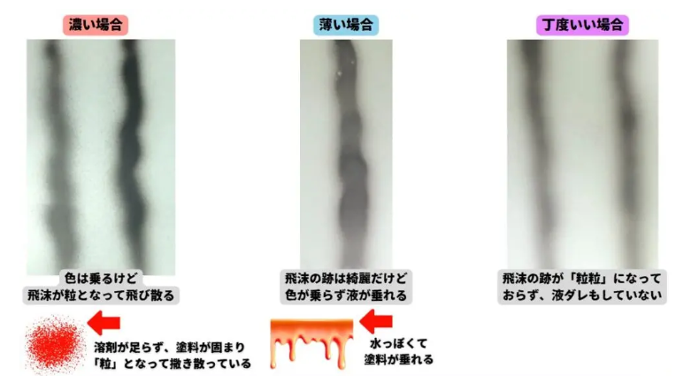 ここからは具体的に「塗料が薄い/濃い場合に起こる問題点」について見ていきます。