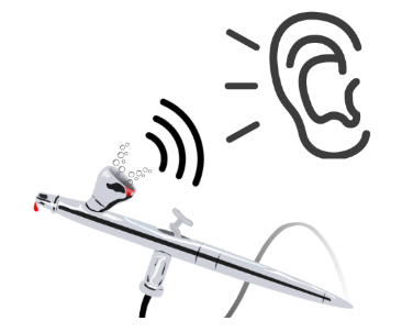 うがい(エアブラシの先端を指で押さえて、空気をカップ内に逆流させること) をさせた時の「音」で、希釈具合を判断する方法があります。