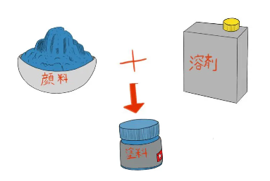 上の写真を見た通り、砂のような顔料だけではとてもプラモデルのパーツに色を塗ることは出来そうにありません。