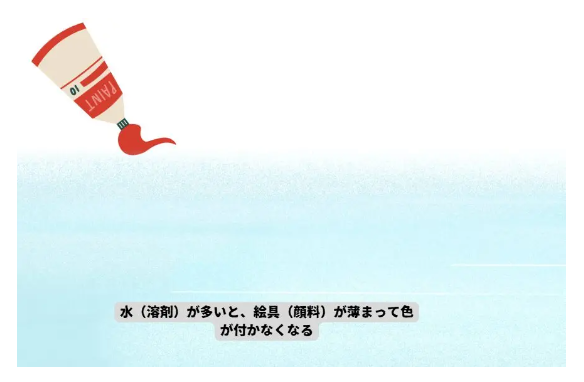 • 塗料が薄いと「塗料の粘度も弱い」となります。