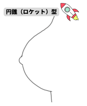 先端(乳頭)に行くほど細くなるので「円錐」で例えられる形です。