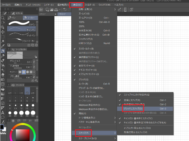 【Clip Studio】グリッドの設定と、グリッドに沿って線を引く