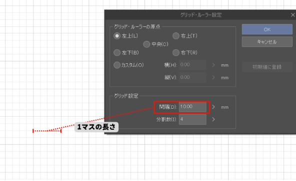 「10mm」なら「1マス10mmのグリッド線」