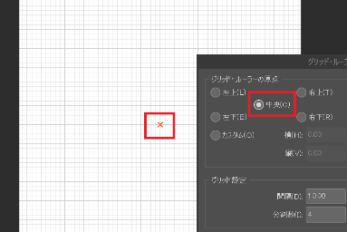 「左上」なら「キャンバスの一番左上」からグリッドが引かれて、「中央」なら真ん中から広がるようにグリッドが引かれます。