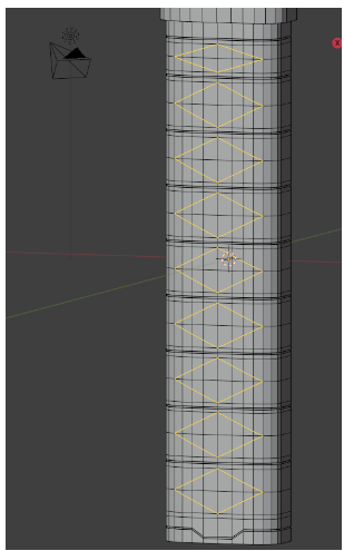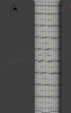 「菱形」は一定間隔で付けられているので「ループカット」で等間隔に「横辺」を入れたいのですが、今の「柄」にループカットしても下のように「凹んだ線」となります。