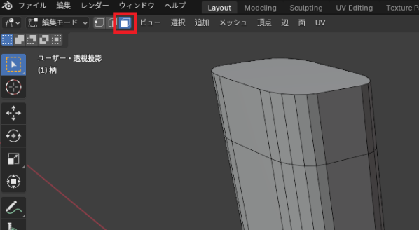 「編集モード」で「辺」や「面」を選択すると黄色く光るのですが「オーバーレイ表示」じゃないと、選択されたか分かりづらいです。