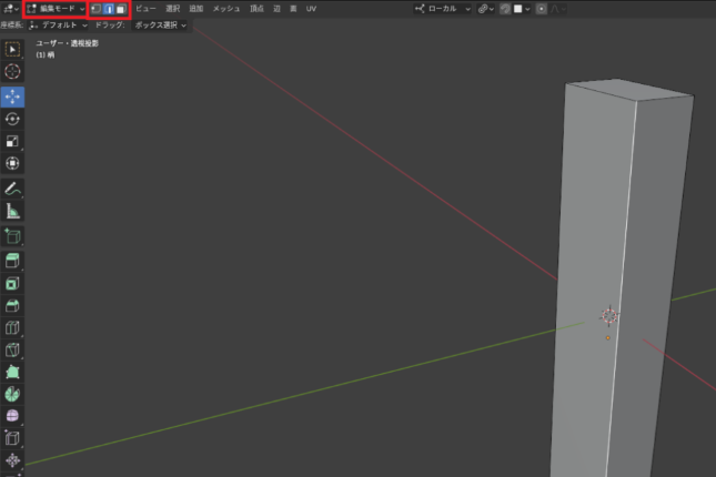 そして「2」を押して「辺選択」に切り替えて、立方体の縦の4辺を選択します。