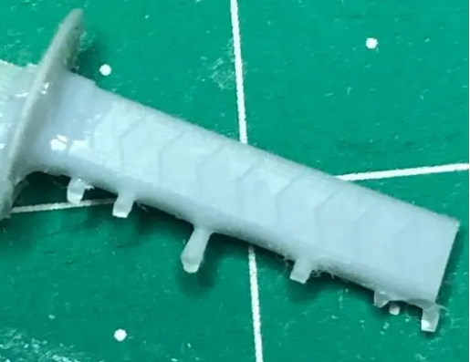 で、塗装が楽になるように「柄本体」と「頭」の間に「スジ」だけ入れて分けておきます。