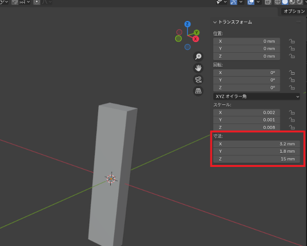 また、もともとは「プラモ用に3Dプリントするためのモデル」だった(そして失敗した)ので寸法がかなり小さいですが、気にしないでください。