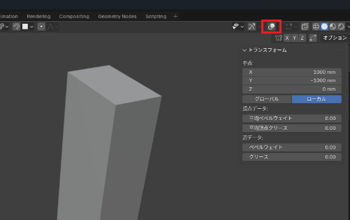 この状態で「CTRL」+「B」で「ベベルツール」を使います。