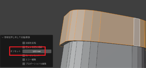 左下のメニューを開いて、キリ良く「オフセット:100㎜」とします。