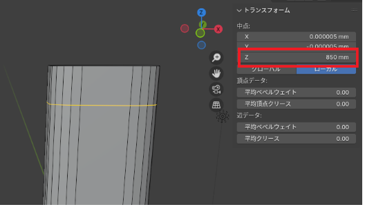 位置は適当で大丈夫です。自分は「Z:850㎜」にしました。