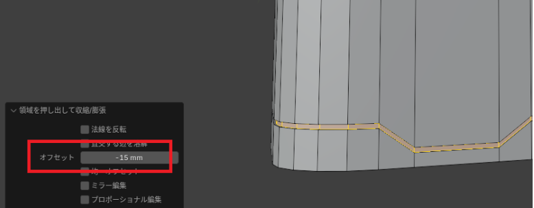 今回私は「-15mm」にしましたが、この程度だと「3Dプリント」したときに全然スジとして彫られていませんでした。