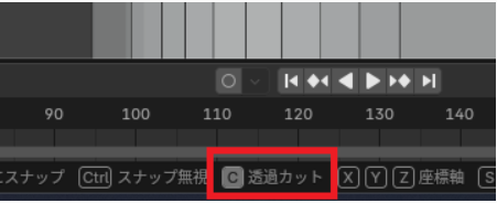 ナイフツールを使用している時に「C」を押すと「透過カット」がONになります。
