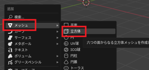 「Shift」 + 「A」で「立方体」を追加します。