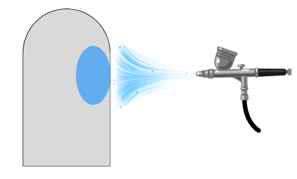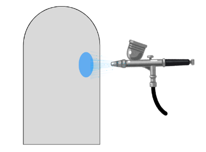 逆に「至近距離で吹く」場合は、塗料が広がりきらずに狭い範囲を塗装できます。