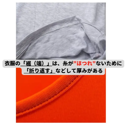 服には「裾」「縫い目」がありますが、そこは透けにくくなっています。