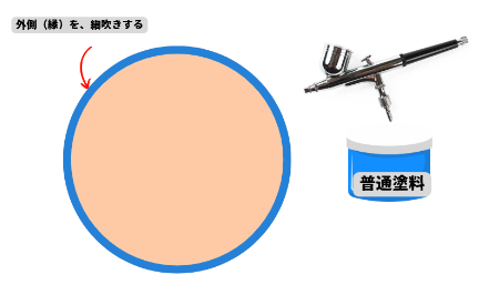 「透けが起きにくい部分」「透けさせる衣装」と同じ色の普通塗料を細吹きします。