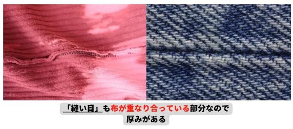 それらは「生地を折り返している」ので、他の部分と比べて「厚み」があるからです。